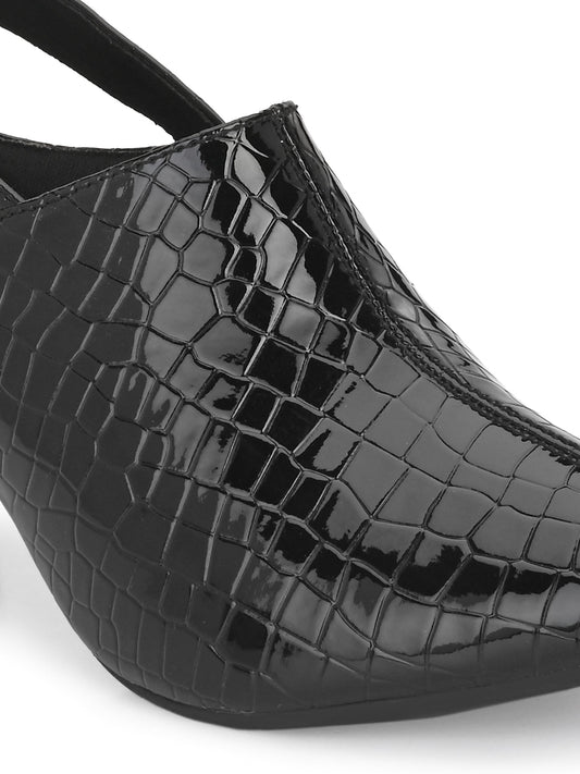 Women Bronze Pumps Printed Pointed Toe Block Heeled Sandals