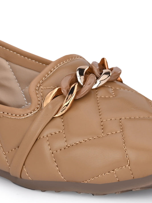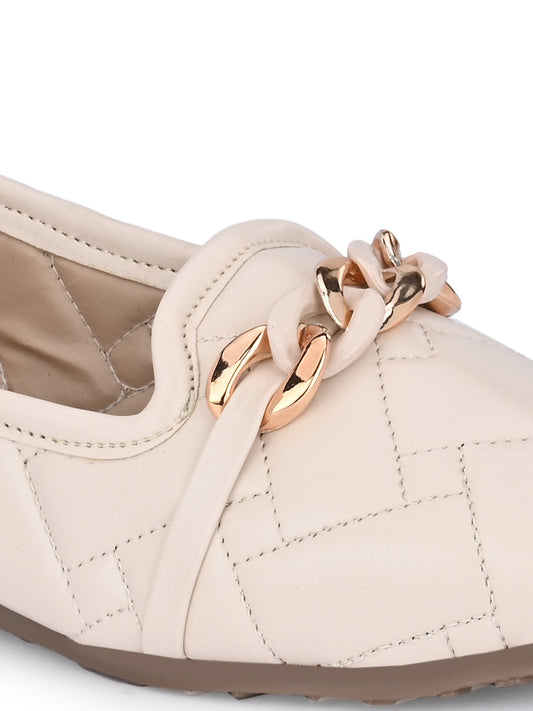 Women Ballerinas Off-White Round Toe Slip Lofers Sandals