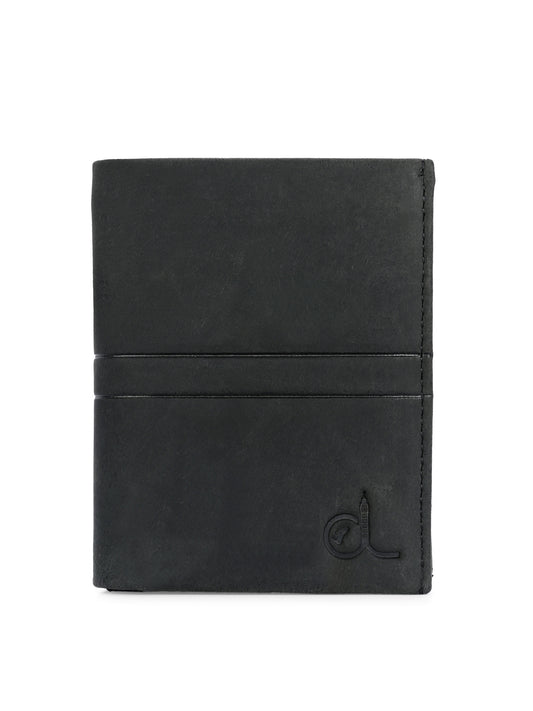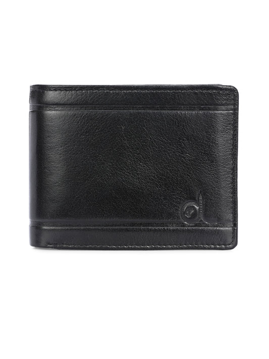 Men's Black Solid Flap Closure Two-Fold Wallet