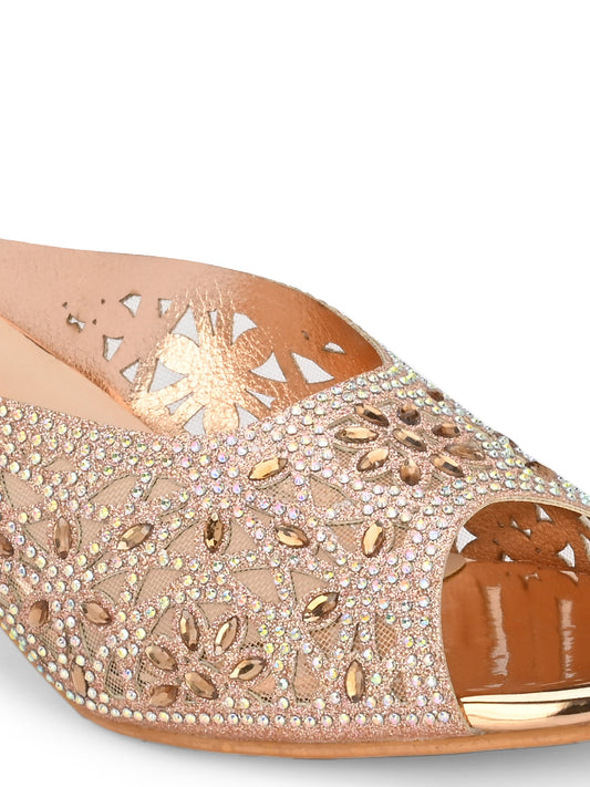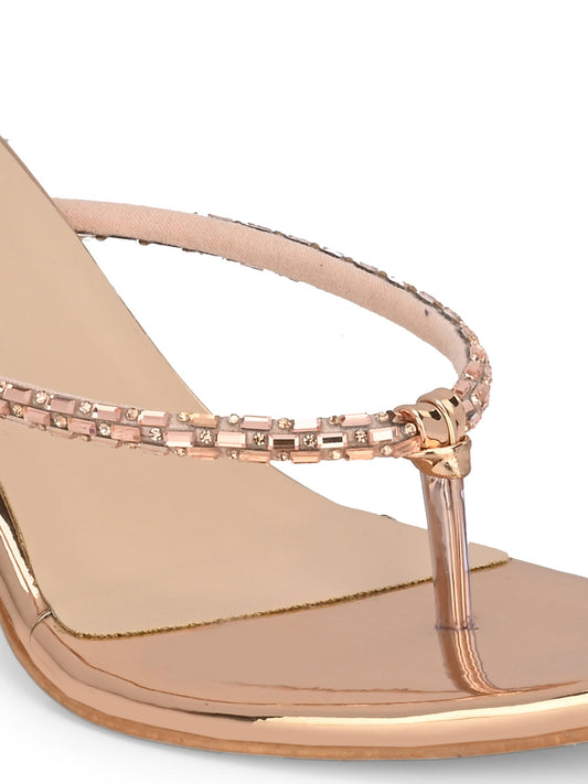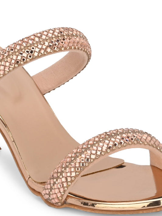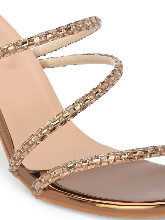 Women Rose Gold Heeled Sandals