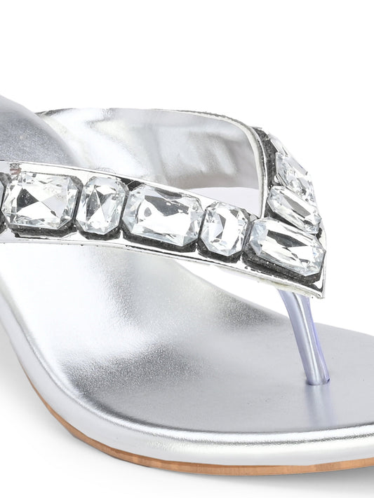 Women Silver Thong Sandals