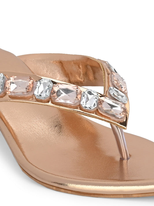 Women Copper Thong Heels Sandals
