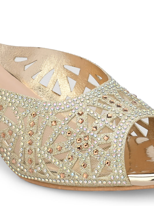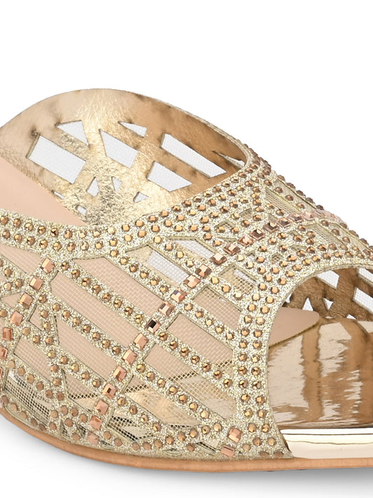 Women Gold Thong Heels Sandals