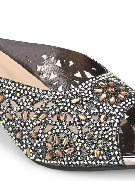 Women Comfortable Grey Heeled Sandals