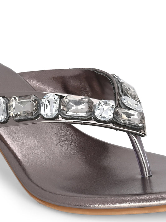 Women Grey Thong Heels Sandals