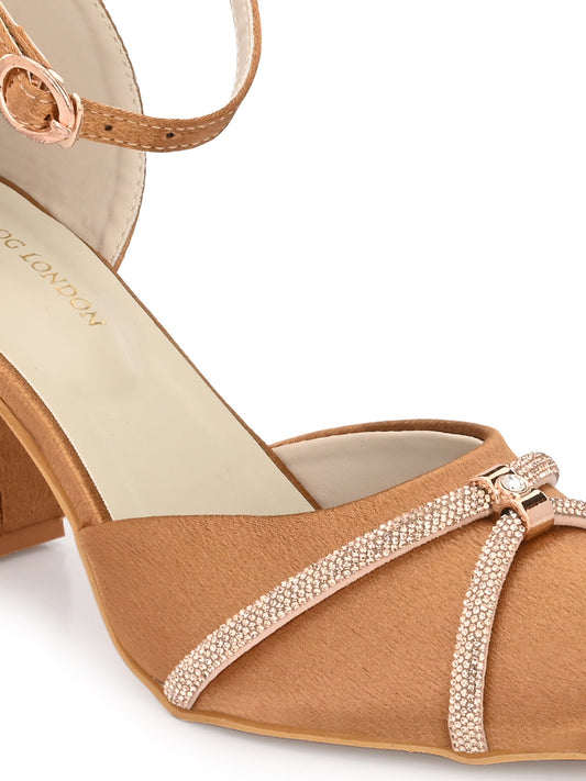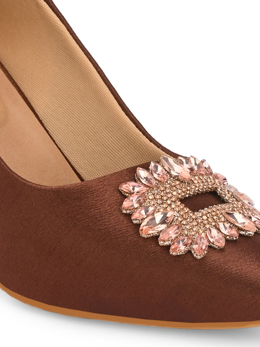Women Brown Pumps Ankle Strap Sandals Heeled