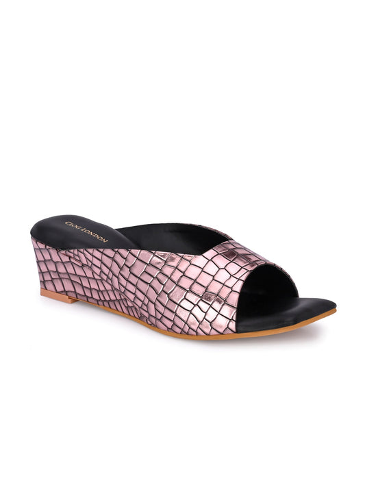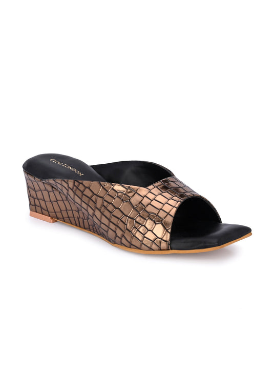 Women Gold Stylish Ethnic Wedge Flat Mules