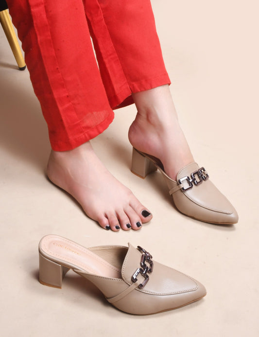 Women Pumps Off-White Heeled Sandal with Adjustable Ankle Strap
