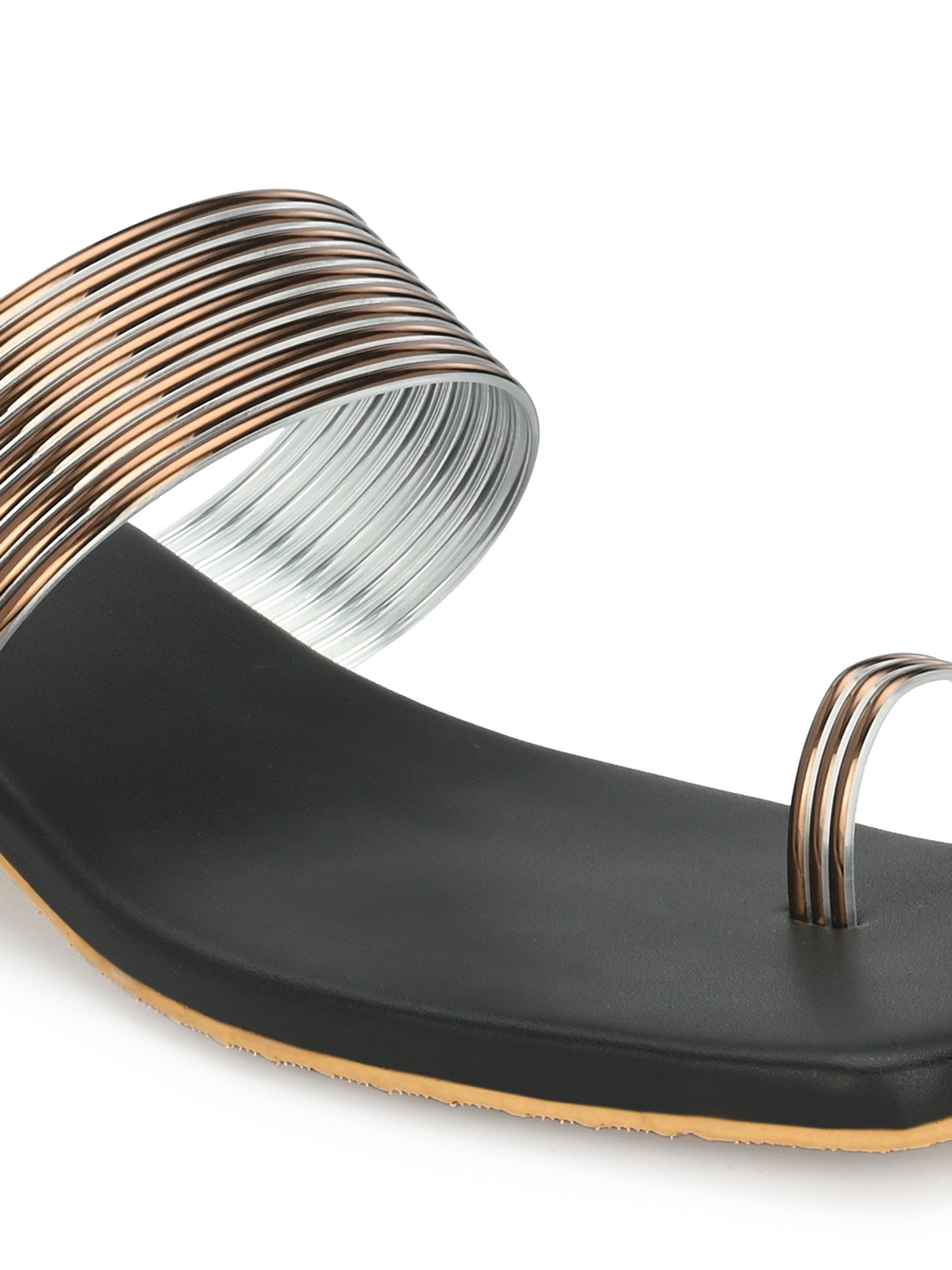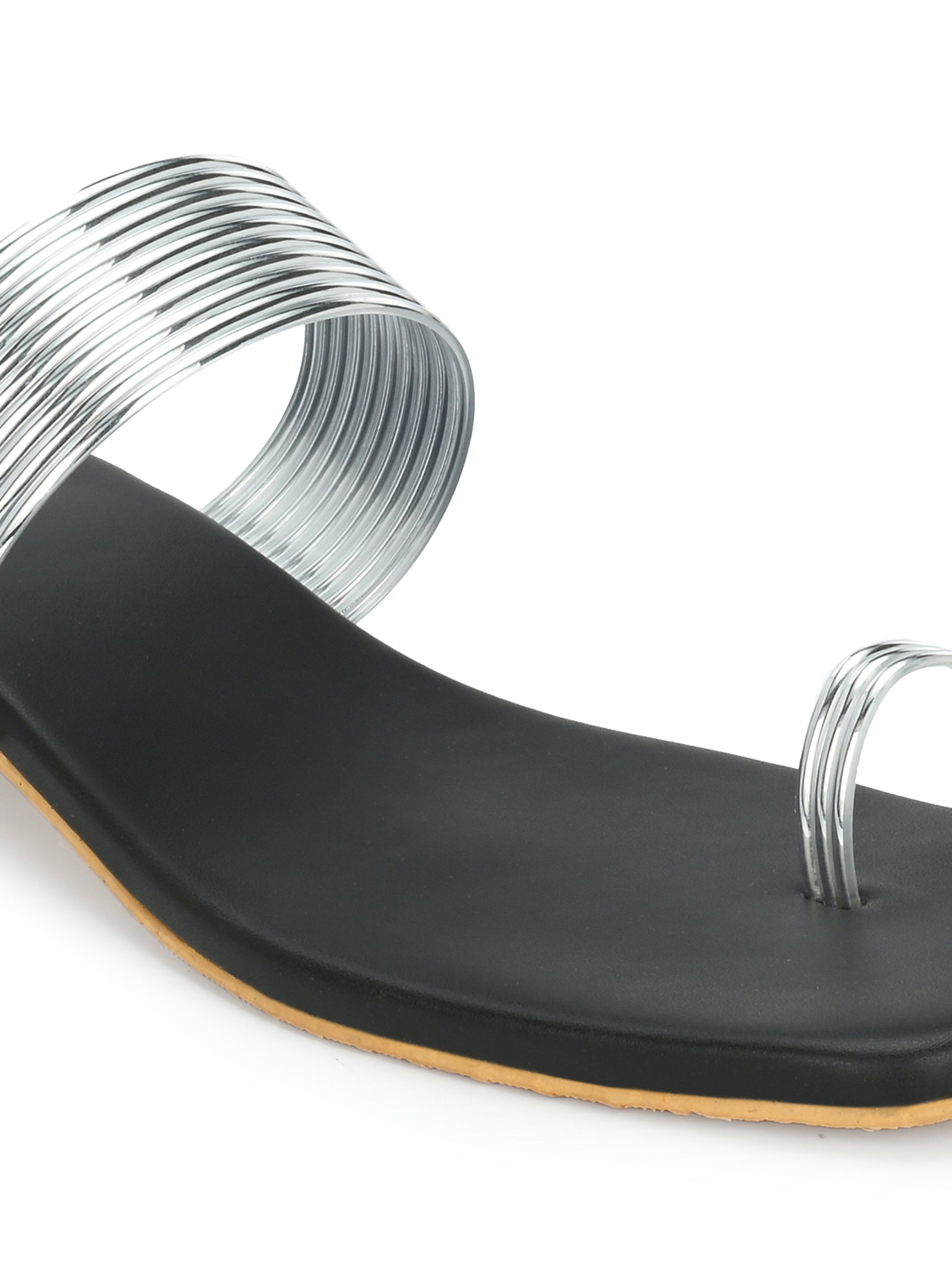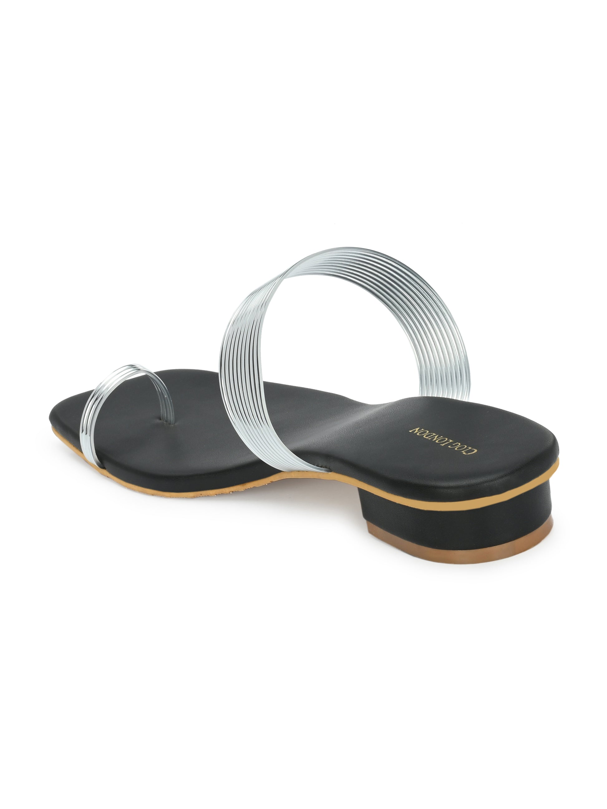 Women Silver Heeled Sandals Strap Slide Flats
